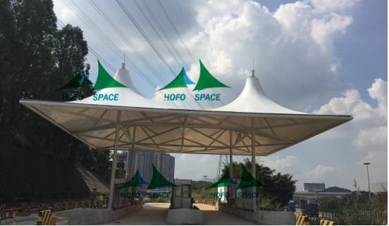 鹽田港投資惠鹽高速荷坳收費(fèi)站在春節(jié)前已正式投入使用,膜結(jié)構(gòu)面積1000㎡。由于是改造工程,施工期間必須確保車道安全通車這無形給施工帶來不少困難,鹽田港集團(tuán)領(lǐng)導(dǎo)非常重視施工及工程質(zhì)量安全,并多次到現(xiàn)場指導(dǎo)哈佛公司施工工作。哈佛公司克服重重困難——保安全、保質(zhì)量、保工期。